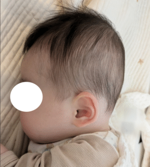 頭が上方向に長く、横長な印象で、かなりの絶壁でした。もっとタミータイムや、首が座った後に縦抱き時間をとっていれば、ここまで絶壁頭にはならなかったのかな….?と反省しています。